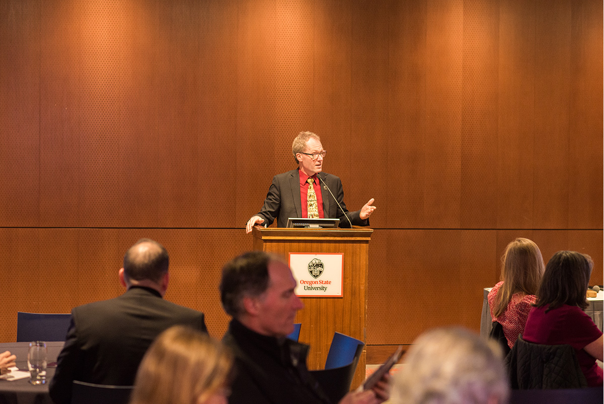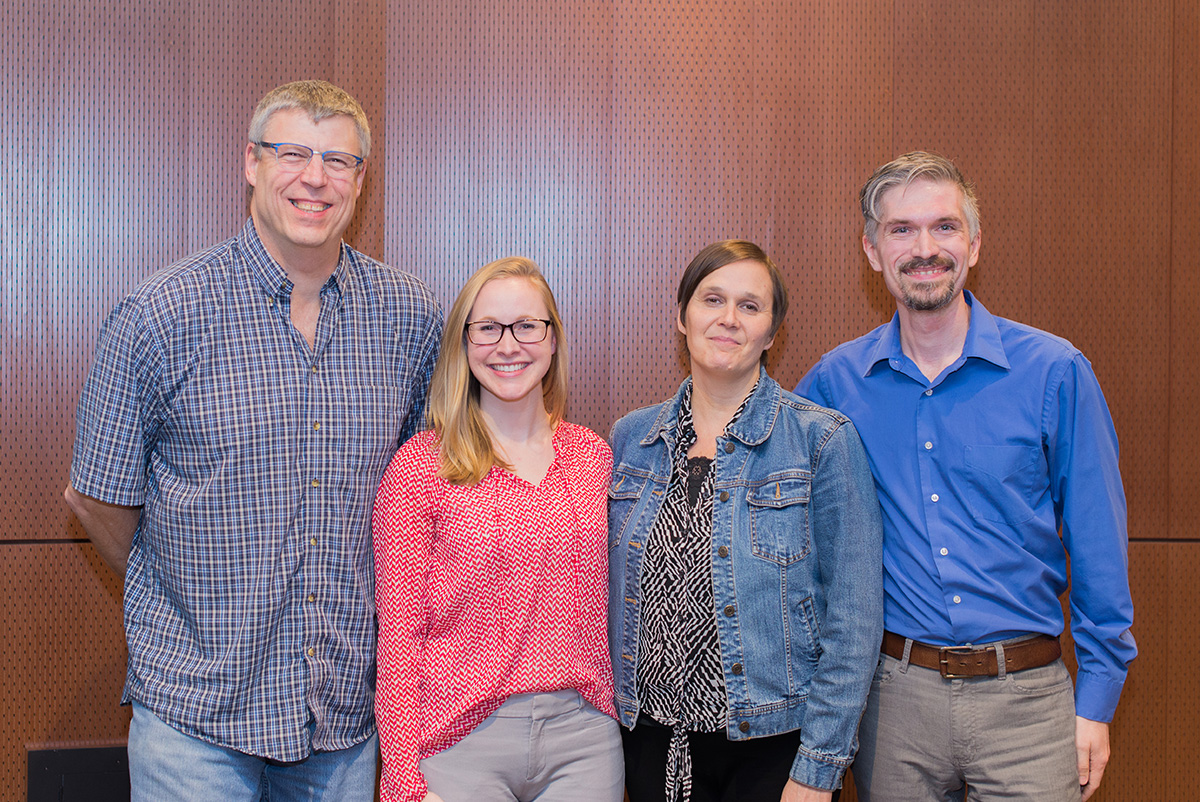At the awards ceremony, mathematics faculty Sara Clark, Lyn Riverstone, Dan Rockwell, and Katy Williams shared their experiences redesigning introductory math courses, particularly college algebra, with new technology, active learning approaches and student performance measures to improve student success.