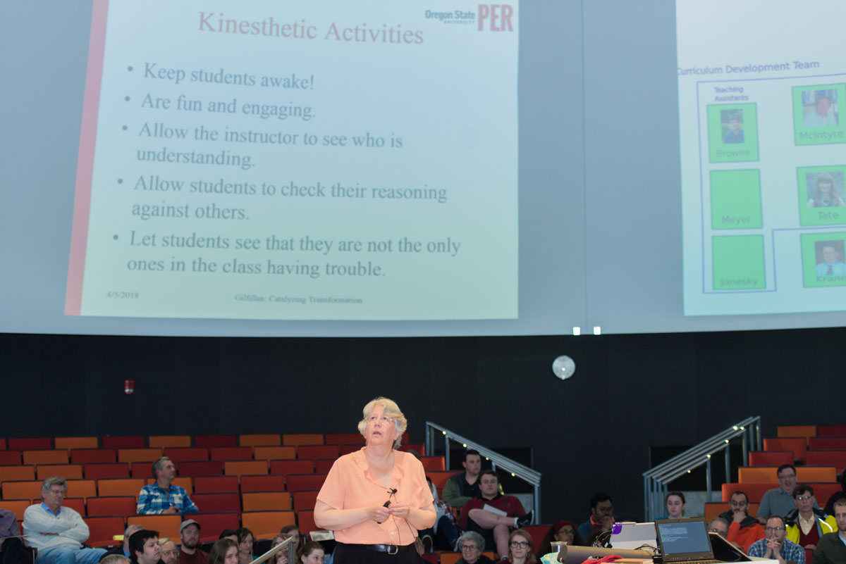 “My experience has shown that STEM education reform works best as a grassroots and collaborative effort in a department where faculty share methods, results and ideas to make curricular decisions on what students should learn and how to make them learn better,” explains Manogue, who also discussed her involvement in changing the culture of teaching and learning within physics and within classrooms.