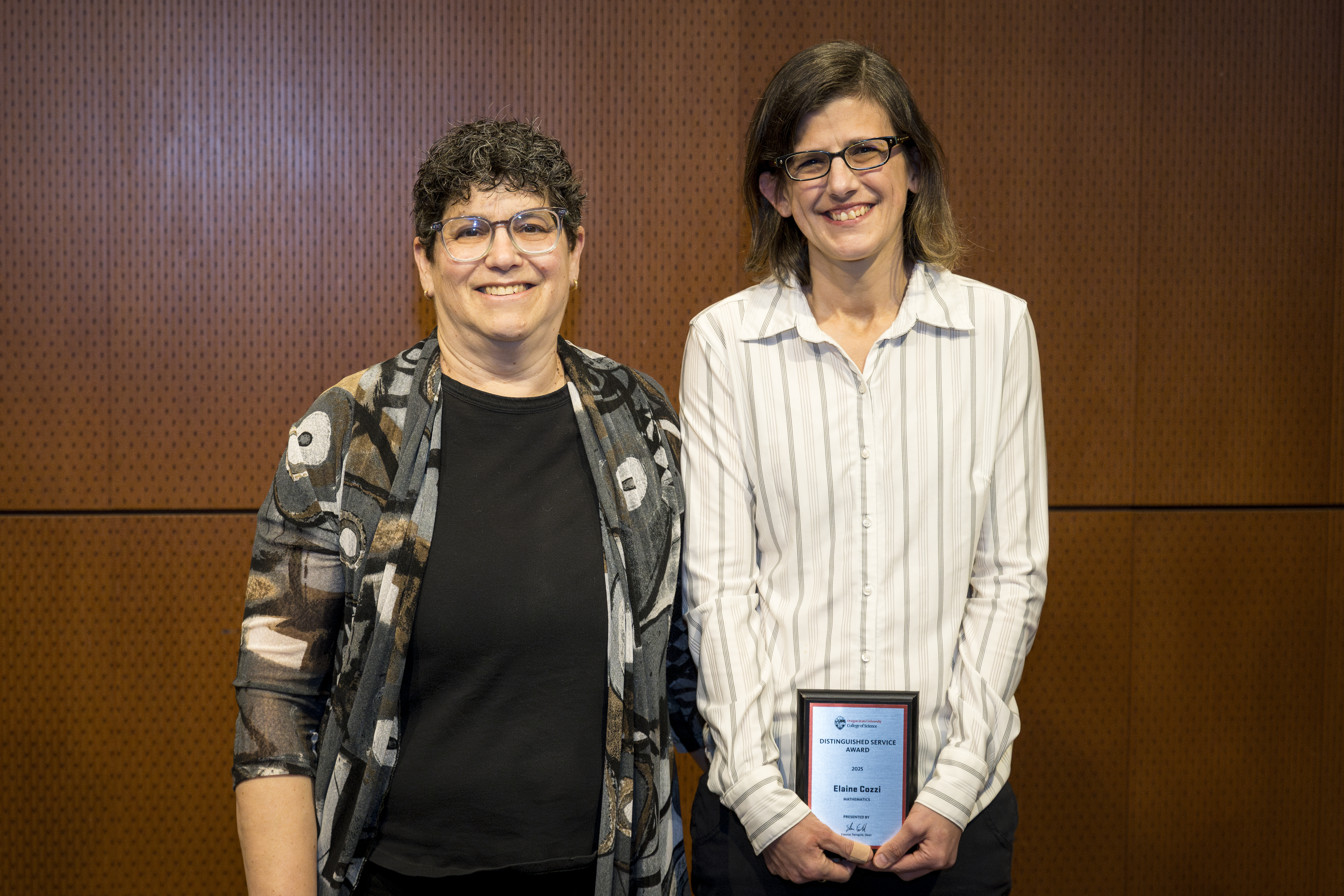 Jon Kujawa, Department of Mathematics head and Cozzi’s nominator, noted, “It is hard to overestimate the impact of Elaine’s planning on the smooth operation of the teaching side of the department. And she readily pivots when unexpected events disrupt the plans.” Additionally, Elaine led the assessment of the Mathematics undergraduate program for several years, playing a crucial role in student success, he shared.