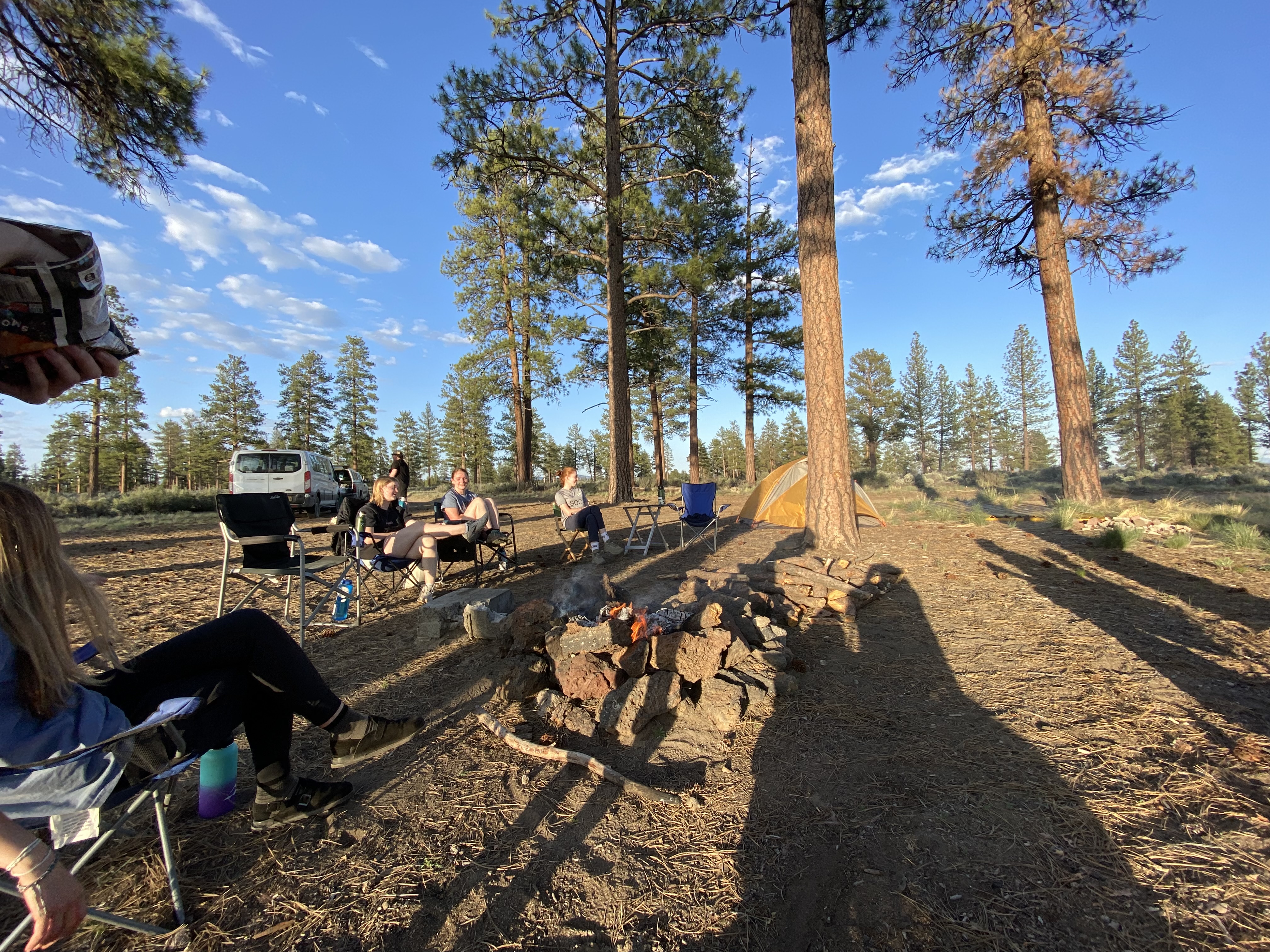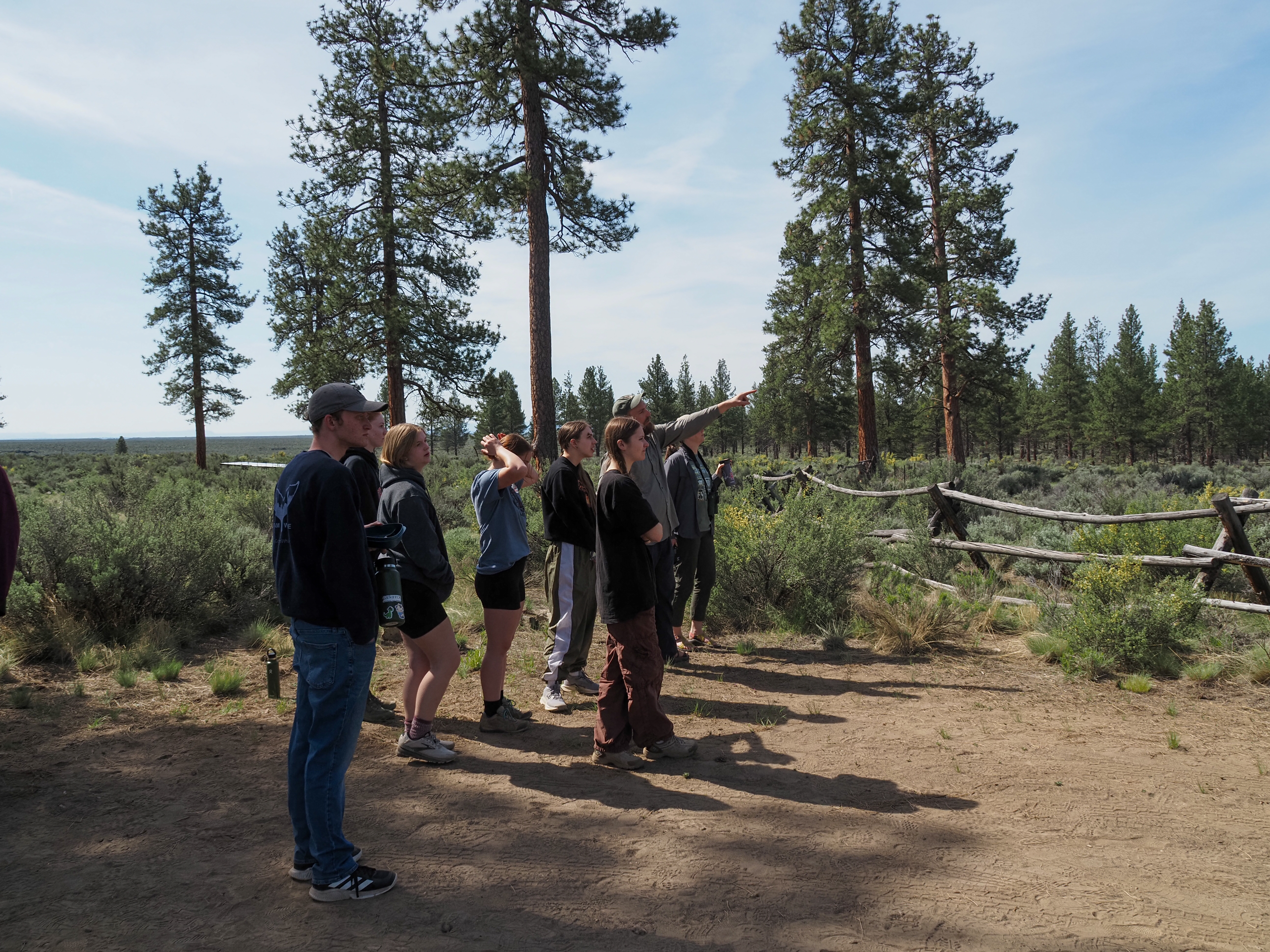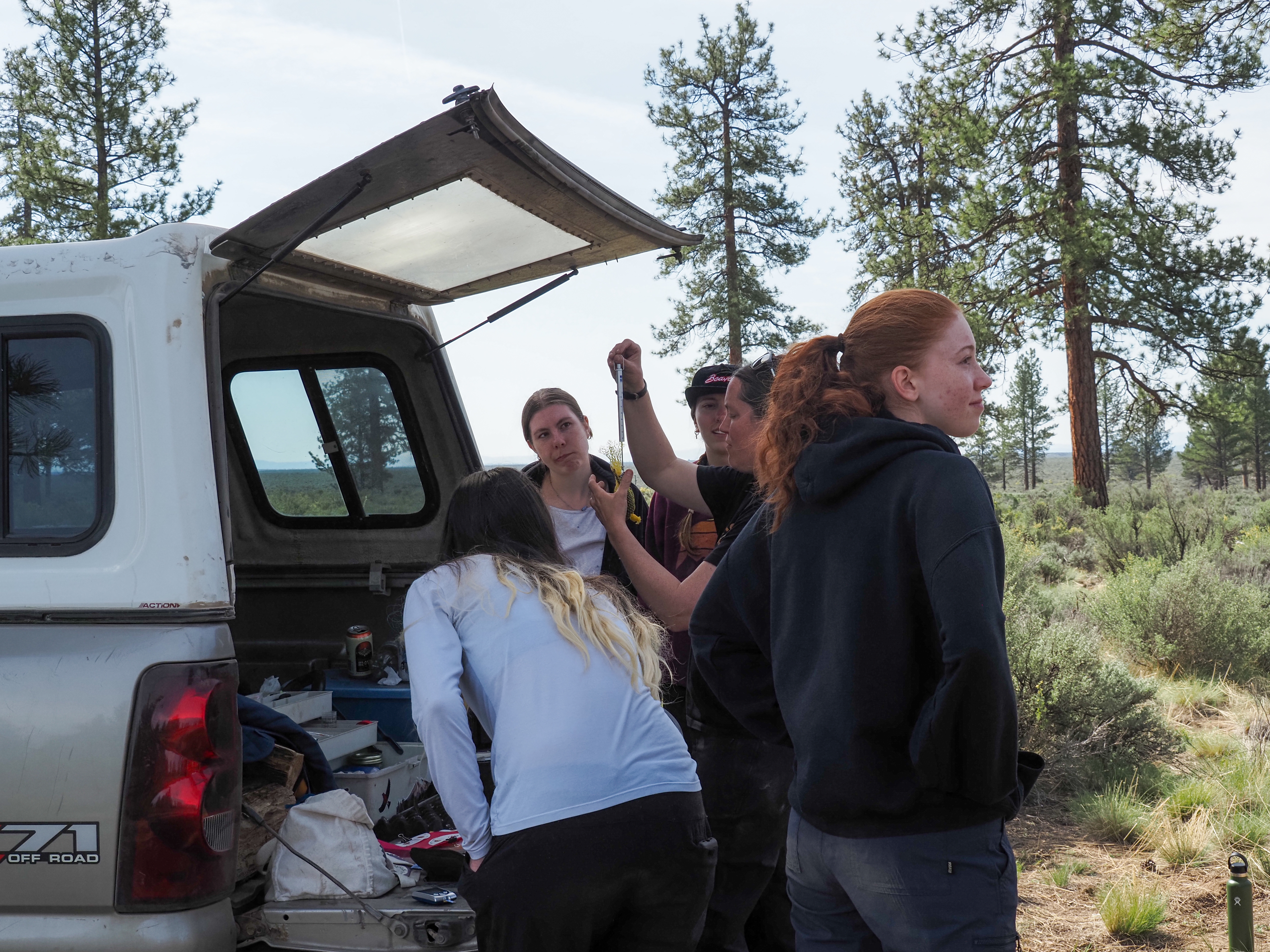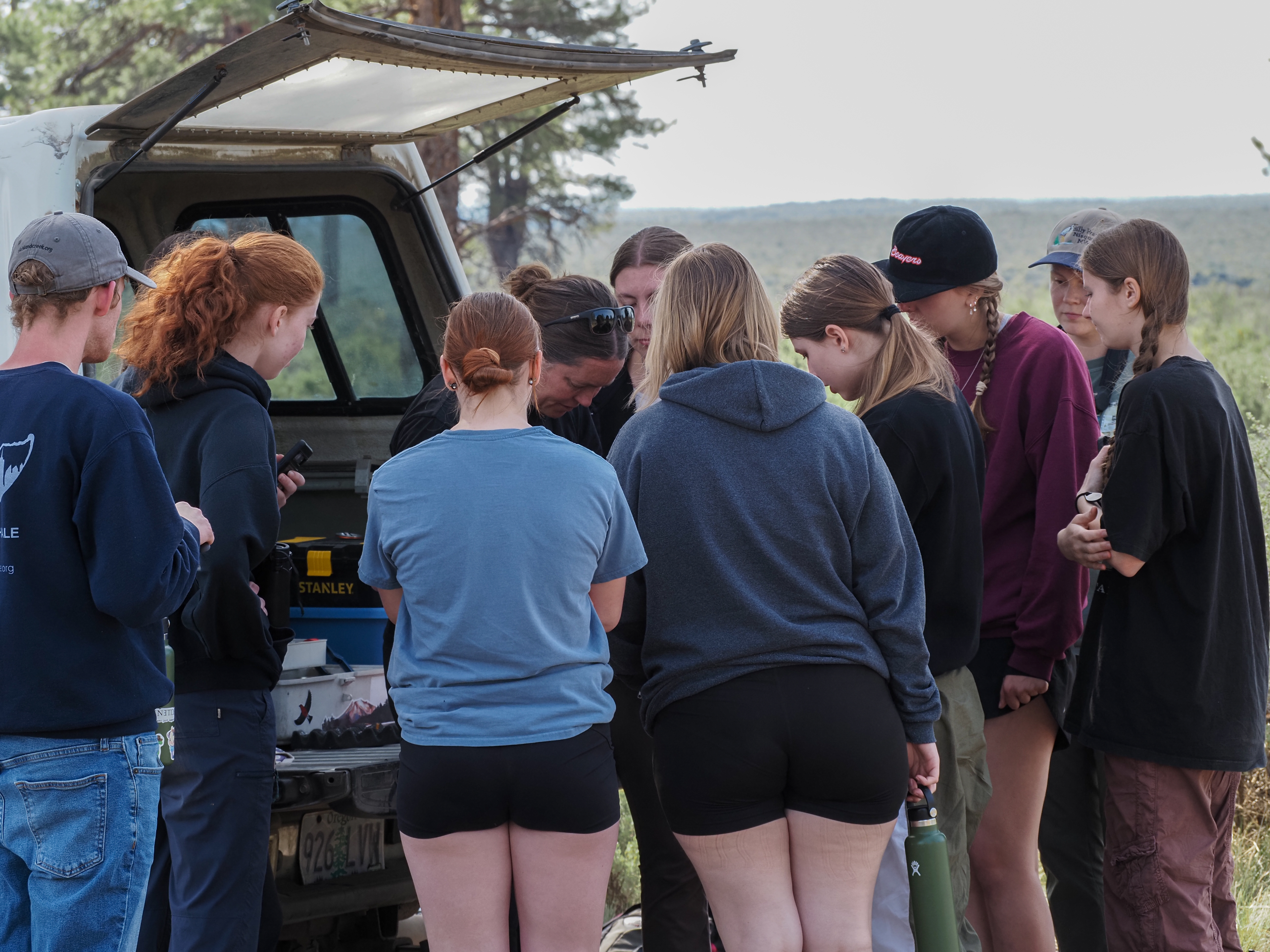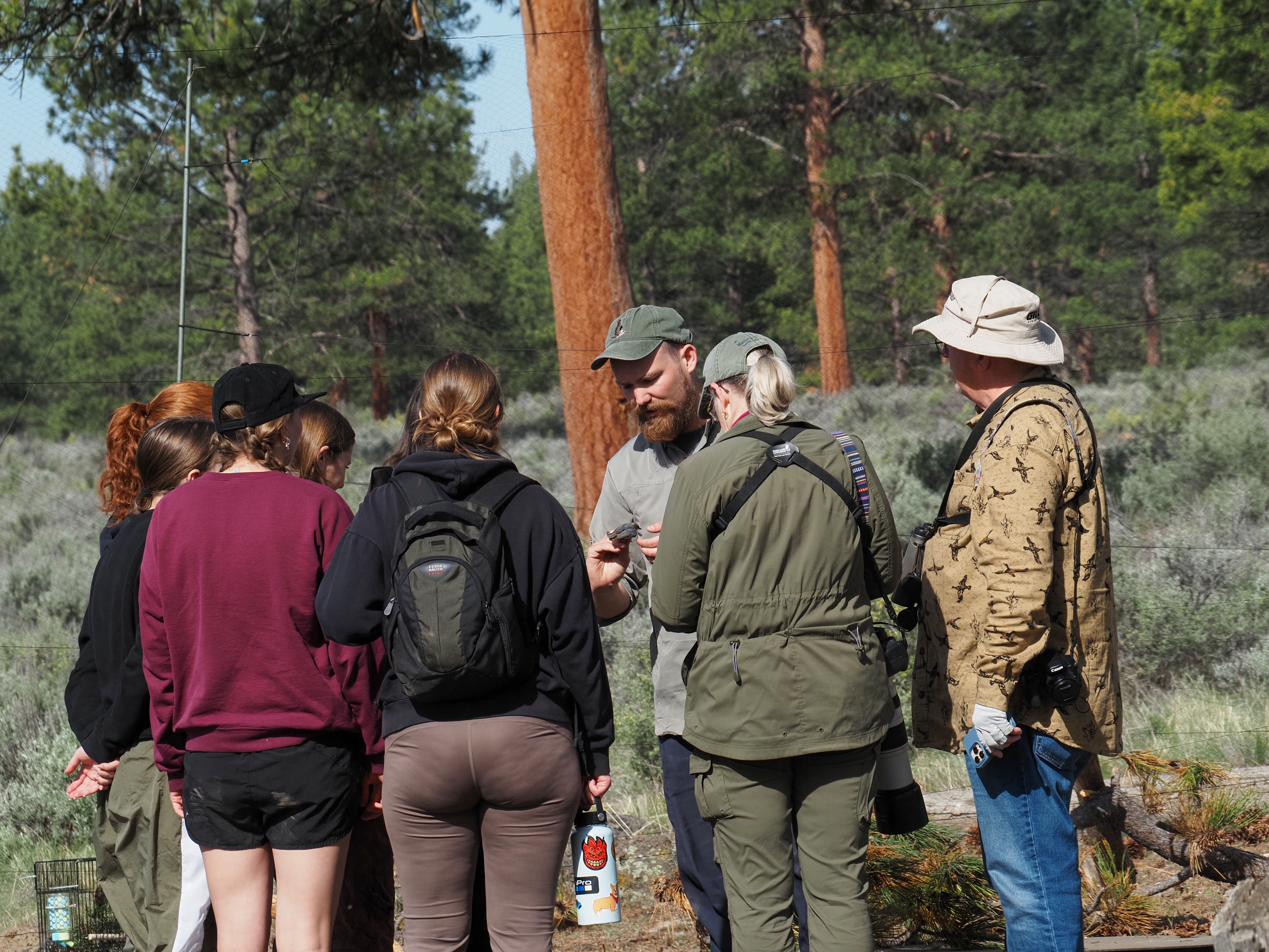 Crouching in a bird blind on Cabin Lake, tucked into the edge of the Deschutes National Forest, Integrative Biology Club (IBC) students scanned the trees. They were looking for red crossbills, small striking birds with bright red feathers and uniquely crossed tips on their bills that help them extract seeds from conifer cones.